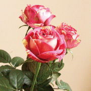モダンローズ ロゼット咲き このバラもラナンキュラシリーズのひとつです。ビターの名の通り茶系の渋いピンク色にクリーム色の斑がはいる個性的な花色ですがほかのシリーズ同様、意外とどんな花とも相性がよく主役にも脇役にもなれる花材です。シックな色合いの中にもピリッとスパイスを花もちも良好な方です。